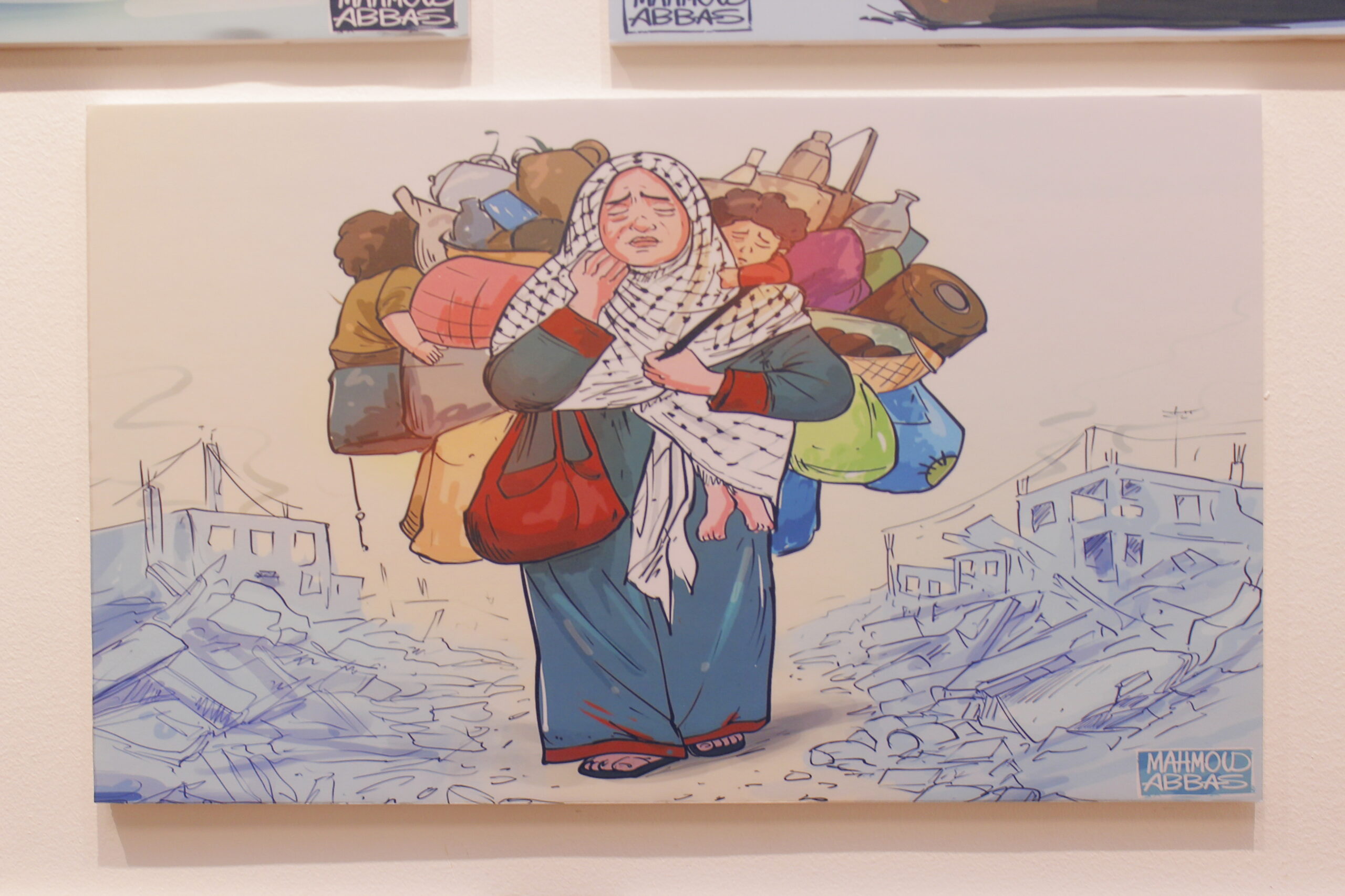 WMF Organizes the Cartoon Exhibition “Sumoud Handala” to Portray the Suffering and Resilience of Gaza’s Women in the Face of the Israeli Aggression