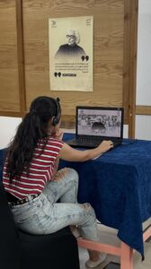 The exhibition features listening stations for visitors to hear the voices of pioneer women narrating their own life stories and the causes for which they advocated. The audio clips presented in the exhibition were recorded for the Women’s Oral History Archive established by the WMF to document the roles and experiences of Egyptian women in the public sphere. The archive encompasses interviews with women from diverse backgrounds and age groups, conducted by the WMF research team over different stages and time periods. Her Mark in History features clips from selected interviews with 20th century women pioneers, and which were retrieved for the WMF Audio Podcast shared in episodes via the WMF’s social media pages and YouTube channel.