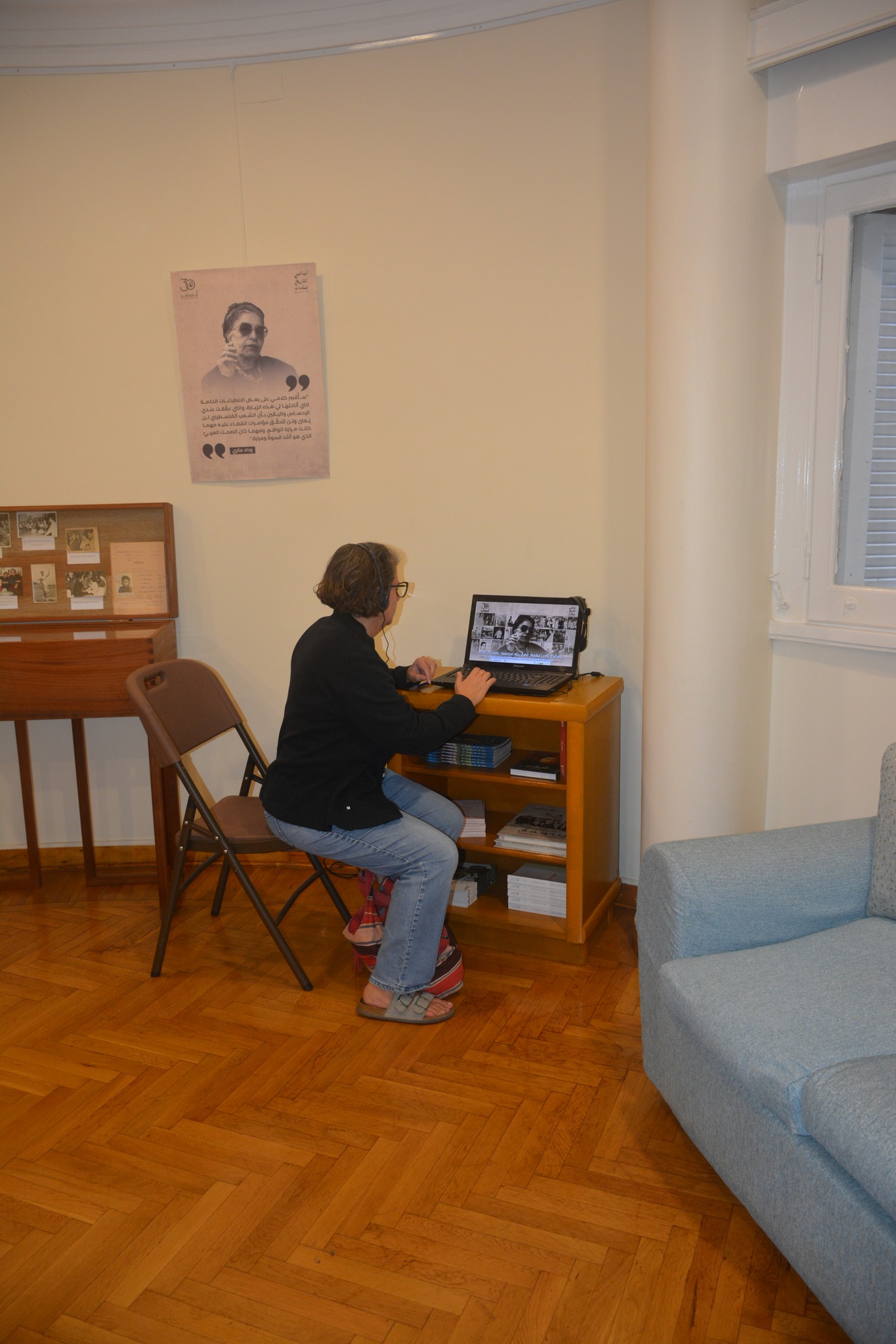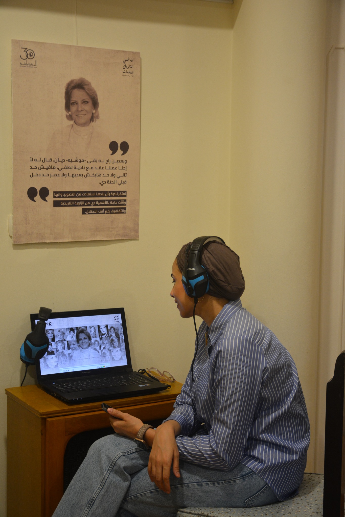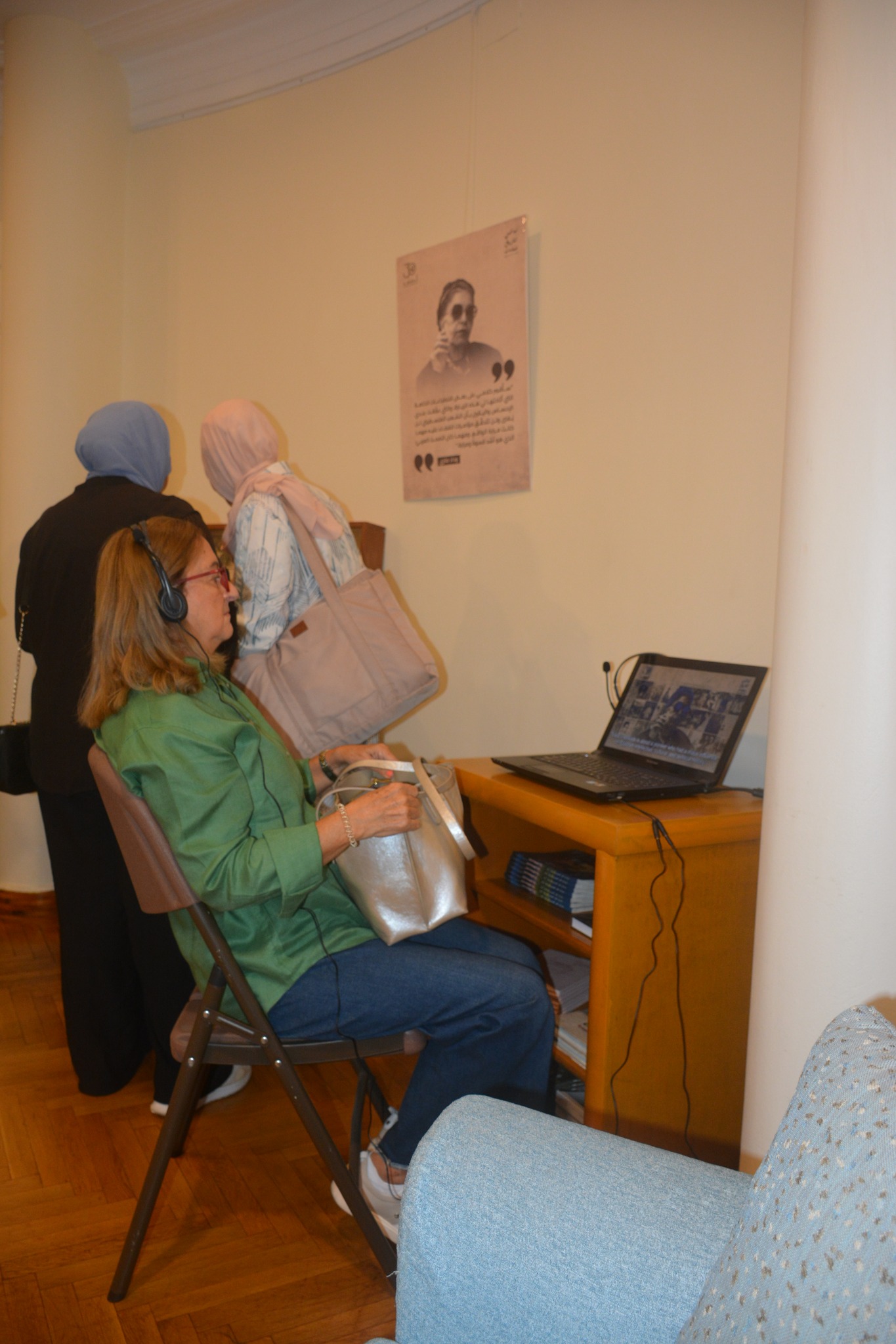The exhibition features listening stations for visitors to hear the voices of pioneer women narrating their own life stories and the causes for which they advocated. The audio clips presented in the exhibition were recorded for the Women’s Oral History Archive established by the WMF to document the roles and experiences of Egyptian women in the public sphere. The archive encompasses interviews with women from diverse backgrounds and age groups, conducted by the WMF research team over different stages and time periods. Her Mark in History features clips from selected interviews with 20th century women pioneers, and which were retrieved for the WMF Audio Podcast shared in episodes via the WMF’s social media pages and YouTube channel.
