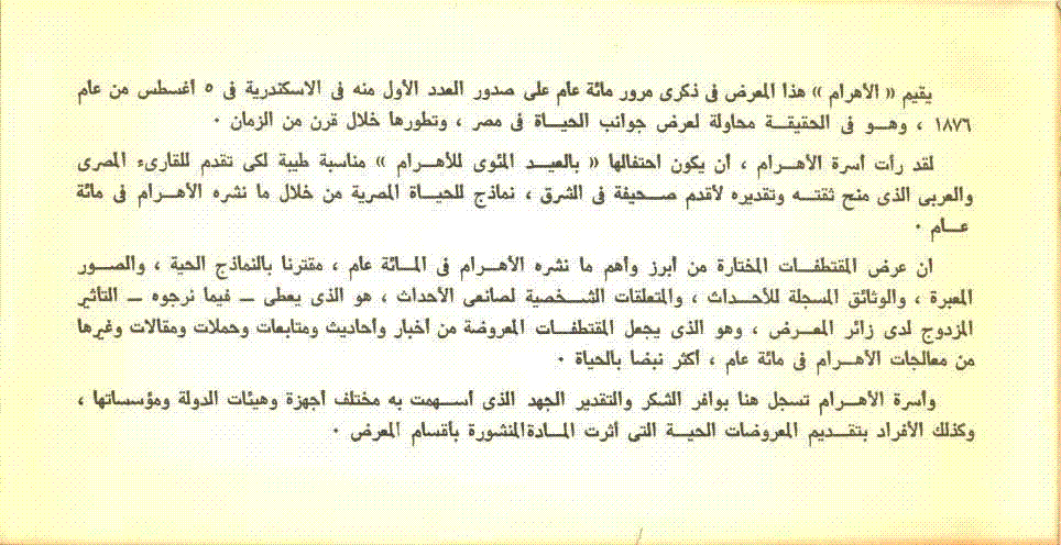 دعوة لحضور معرض العيد المئوى للاهرام.