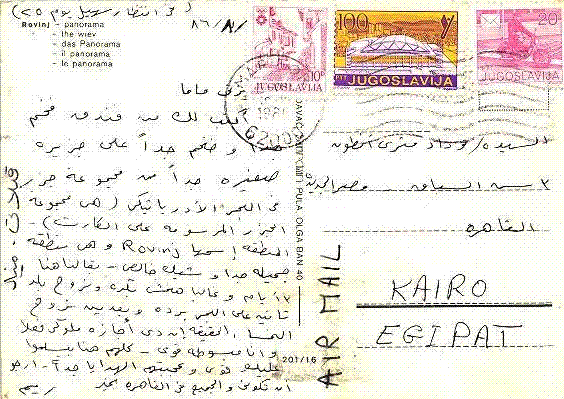 بطاقة معايدة مرسلة من ريم سعد الى والدتها السيدة وداد مترى.