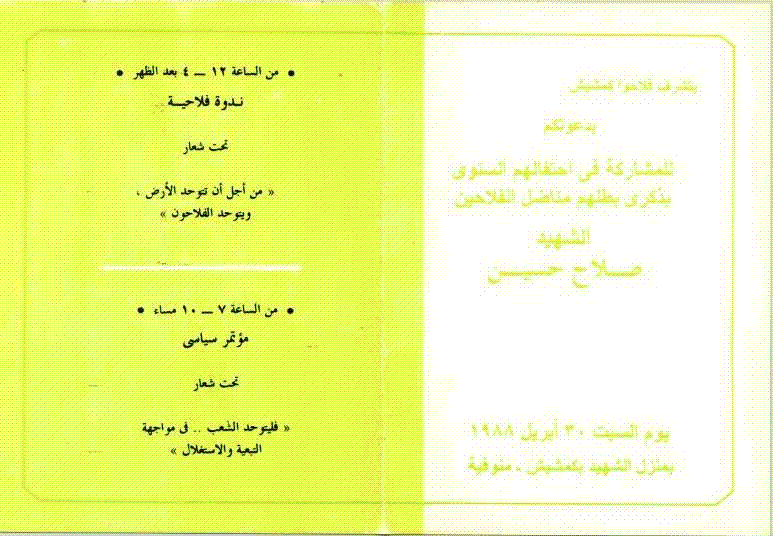 دعوة للمشاركة فى الإحتفال السنوى لذكرى مناضل الفلاحين الشهيد “صلاح حسين”.